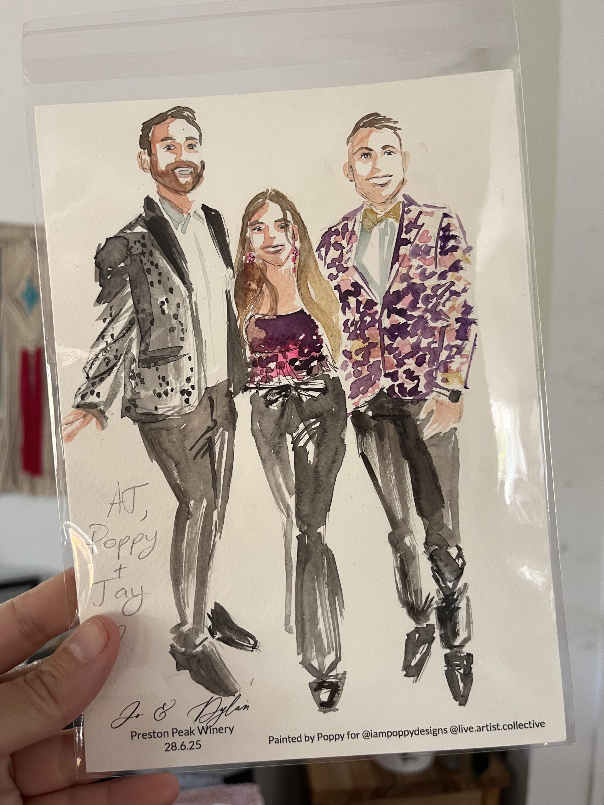 A5 watercolour character portrait hand painted from your uploaded photo.